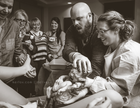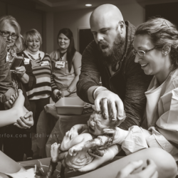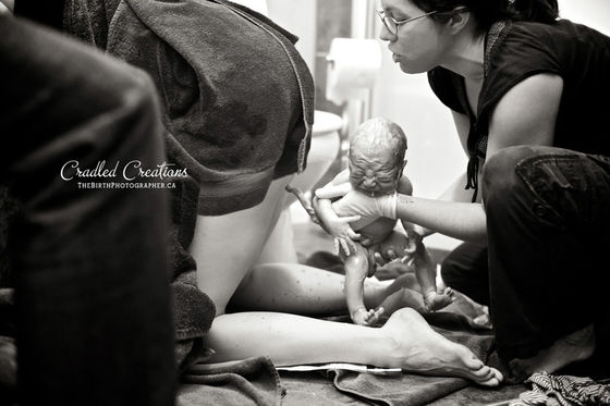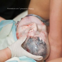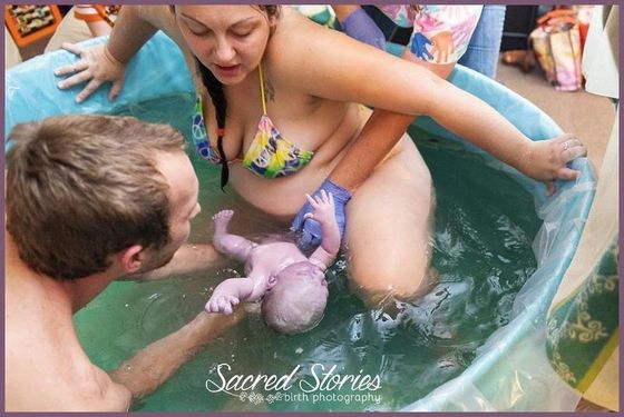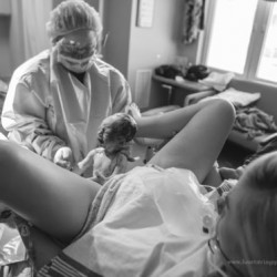 „Gullfalleg heimafæðing. Foreldrarnir vissu ekki kynið og það var ekki fyrr en ljósmóðirin dró barnið upp og á bringu móðurinnar sem þau komust að því að þetta væri stúlka.“ – Paige