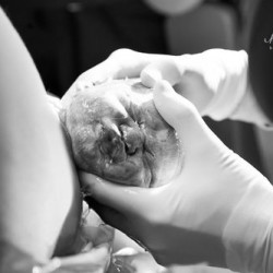 „Þessi mynd var tekin í heimafæðingu og þetta barn var seinni tvíburinn að koma í heiminn. Hann kom í heiminn í líknarbelgnum og ég hafði 5 sekúndur til að ná þessari mynd“ – Leilani Rogers