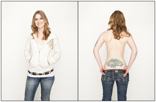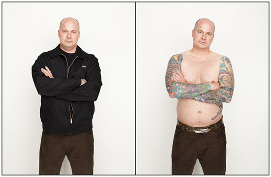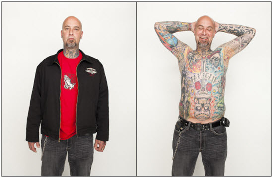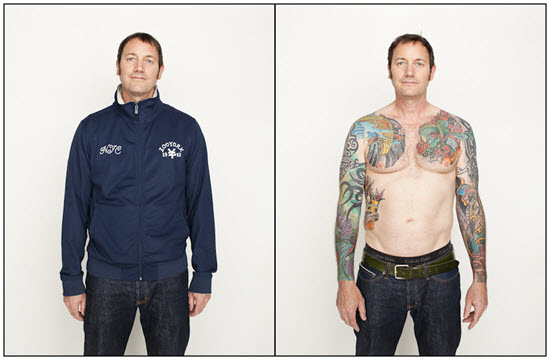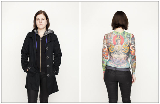 Í þessum magnaða myndaþætti sem ber einfaldlegga heitið “Tattoo Project” og  ljósmyndarinn Spencer Kovats myndaði fyrir nokkru bera fjölmargir hugrakkir og húðflúraðir einstaklingar líkama sinn fyrir linsunni; fletta klæðum fyrir manninn með linsuna og sýna í raun hvað er að sjá þegar fötunum hefur verið fækkað og þeirra “innra sjálf” er afhjúpað.