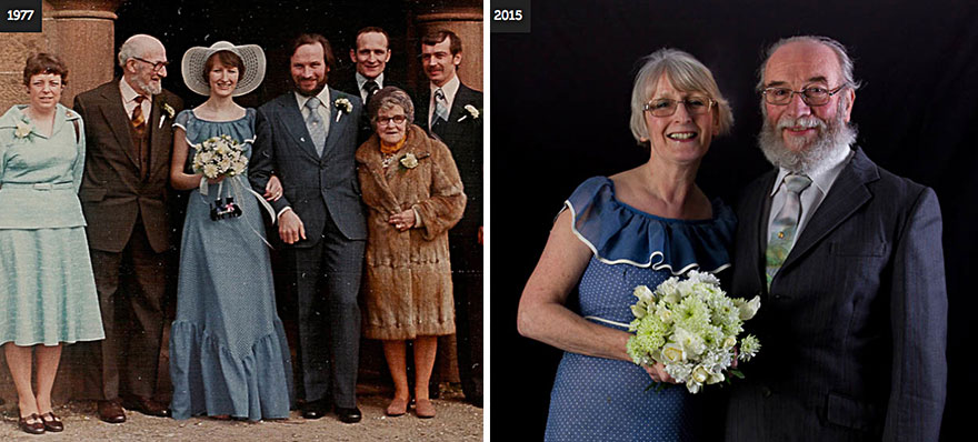 Ástin getur alveg enst. Hér eru 12 pör sem hafa verið lengi saman og sýna okkur myndir frá stóra deginum sínum og svo af sér í dag.
