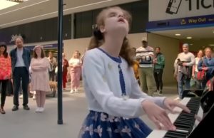 Blind stúlka spilar óaðfinnanlega á píanó á lestarstöð