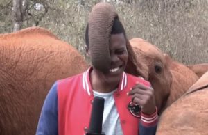 Fílsungi truflaði blaðamann í beinni útsendingu