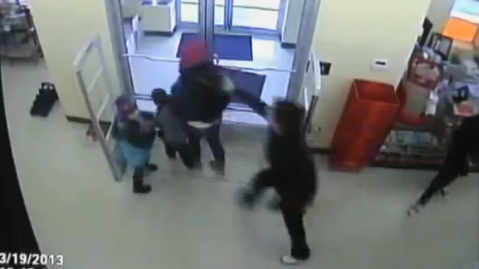 Lætur 7 ára dóttur sína spreyja starfsmann með piparspreyi – Myndband