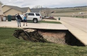 Jörðin opnaðist í garðinum hjá þeim