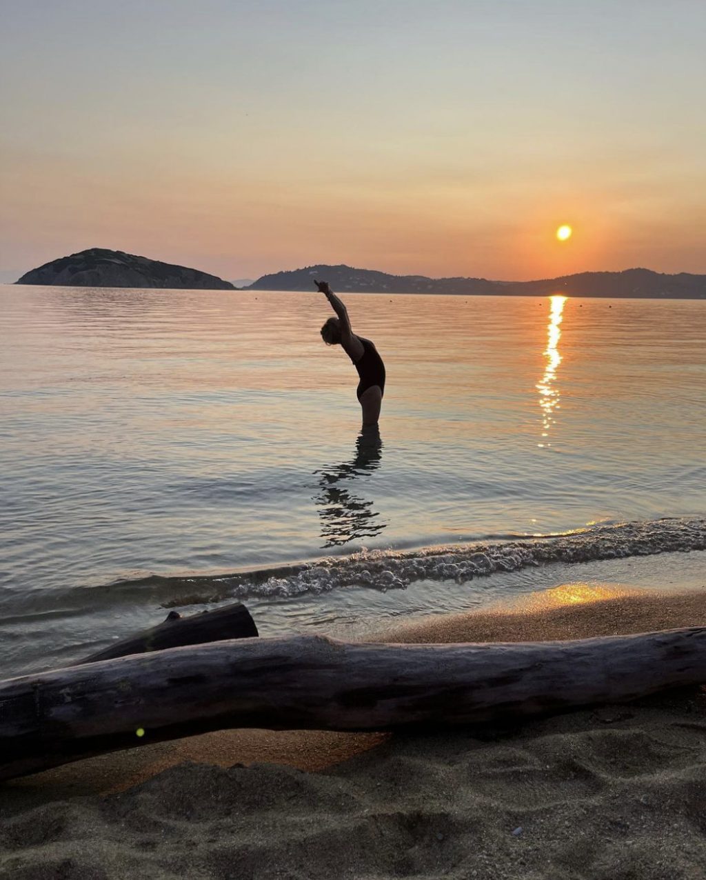 Goldie Hawn deildi á dögunum æðislegri sundfatamynd af sjálfri sér við sólsetur úr fríi sínu í Skiathos, Grikklandi og skrifaði við hún við myndina „Síðasti dagurinn á Skiathos í ár. Bless bless paradís 🏖️,“