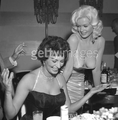 Þannig er þessi ljósmynd hér fyrir löngu orðin fræg og hefur um langt skeið þótt vera holdgervingur kvenlegrar öfundar og samanburðar – sjálf Sophia Lauren starir forviða og full vanþóknunar á lostafullan barm kynbombunnar Jane Mansfield í hátíðarkvöldverði og svo virðist við fyrstu sýn að Sophia eigi erfitt með að hemja gremju sína og í raun reiði í garð keppinautarins um athyglina það kvöldið.