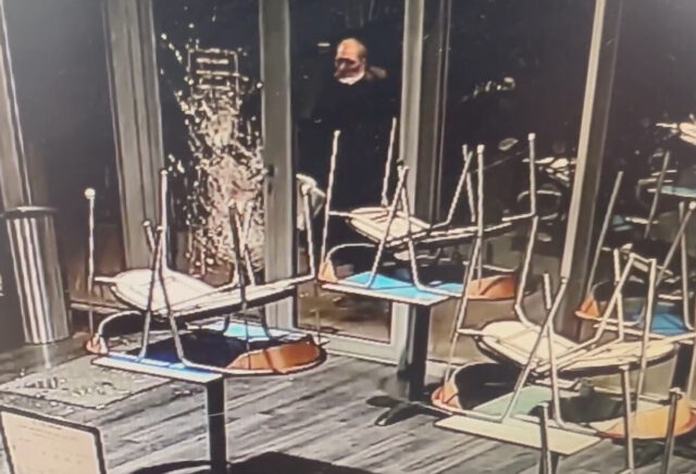 Þessi maður braust inn í kaffihús á höfuðborgarsvæðinu og náðust þessar myndir af honum í öryggismyndavélum.