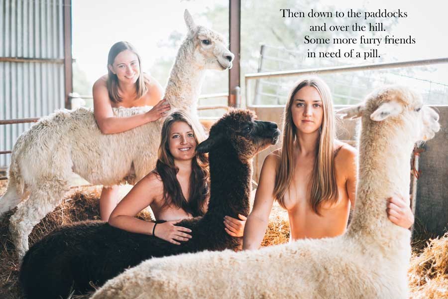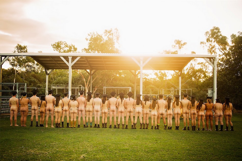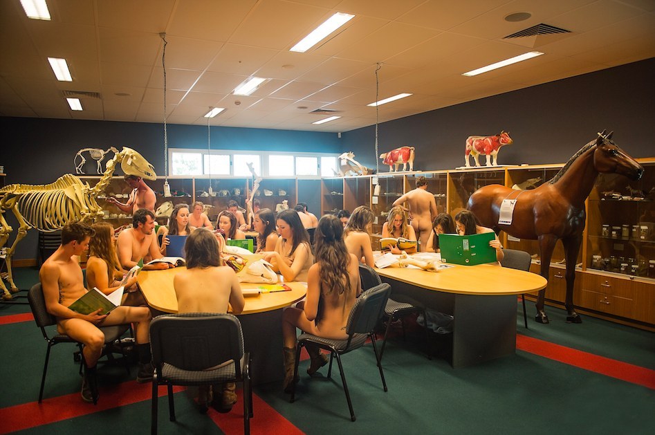 „Æ, okkur langaði bara ekkert til að fara hefðbundar leiðir og snara upp smákökubás, grillveislu og servíettusölu. Við ákváðum þess vegna að ganga alla leið, rífa okkur úr fötunum og vera hugrökk. Okkur langaði að vera skapandi, skemmtileg og bjóða upp á smekklegt og listrænt dagatal. Og þar kemur nektin við sögu,” sagði Angela Davey, ábyrgðarmaður nektardagatals ástralskra dýralæknanema í viðtali við Buzzfeed, aðspurð hvers vegan heill árangur hefði rifið sig úr fötunum frammi fyrir myndavélum og berað bossann í fjáröflunarskyni fyrir skemmstu.