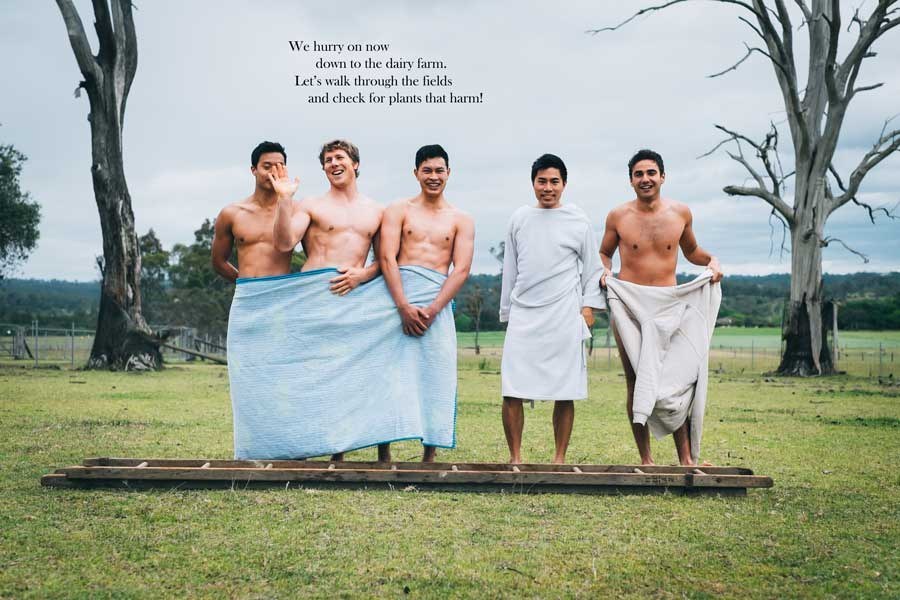 Útkomuna má sjá hér á þessum ljósmyndum, en árgangurinn reif sig úr hverri spjör og út í guðsgræna, ástralska náttúruna hlupu sprellandi og tístandi dýralæknanemar sem allir útskrifast brátt úr skóla og beruðu sitt allra heilagasta fyrir linsu ljósmyndarans.