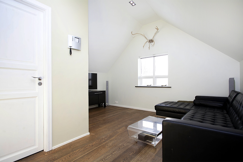 -Efri hæðin er mjög vel skipulögð, mikil lofthæð gerir rýmið stærra og innfelda lýsingin gefur hæðinni karakter.