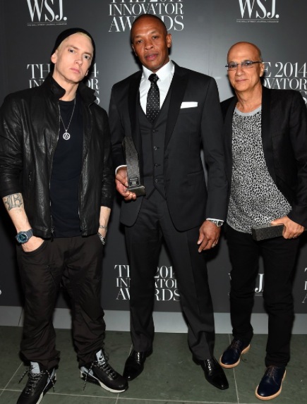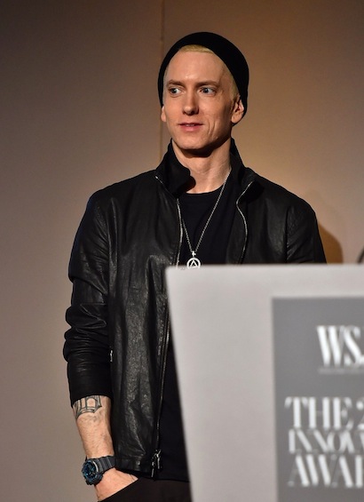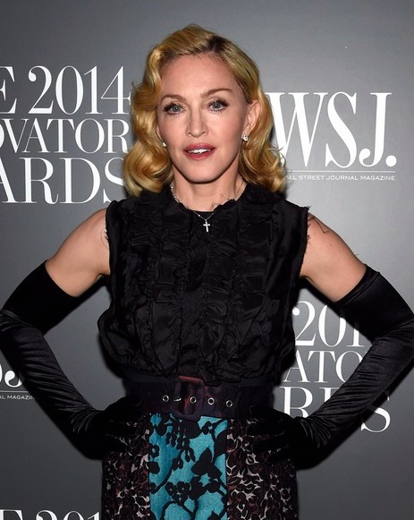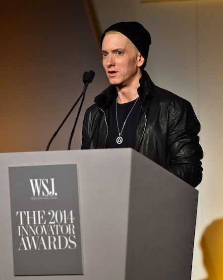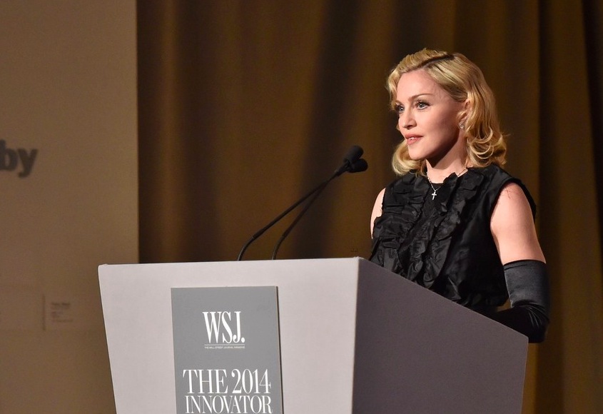 Drottning poppsins Madonna og rapparinn Eminem sjást hér stilla sér upp ásamt Dr. Dre og Jimmy Iovine á viðburðinum WSJ Magazine’s 2014 í New York á dögunum. Þar voru afhent verðlaun fyrir frumkvöðul ársins en meðal heiðursverðlaunahafa í þetta sinn voru Dr. Dre, Lil Buck og Jimmy Iovine. Tók Madonna lagið á sviðinu en hún tók það fram á Instagram að hafa tileinkað lagið Lil Buck.