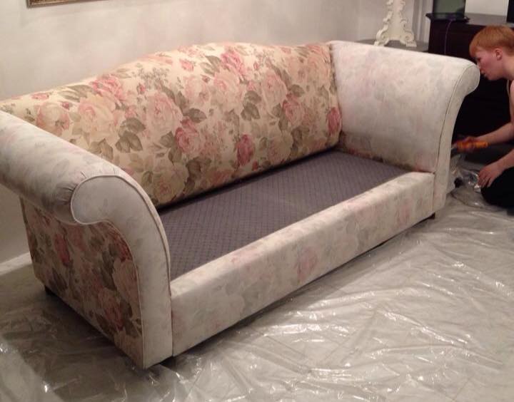 „Ég byrjaði á því að þrífa sófann, ryksugaði og með blautri tusku. Svo blandaði ég einn textile medium á móti einni dós af málningu. Fyrst spreyjaði ég vatni með úðabrúsa til að bleyta efnið til að það dragi betur í sig svo byrjaði ég að mála. Ég notaði um það bil 2.5 lítra af málningu og þetta kostaði mig í apríl um 15.000 kr.“
