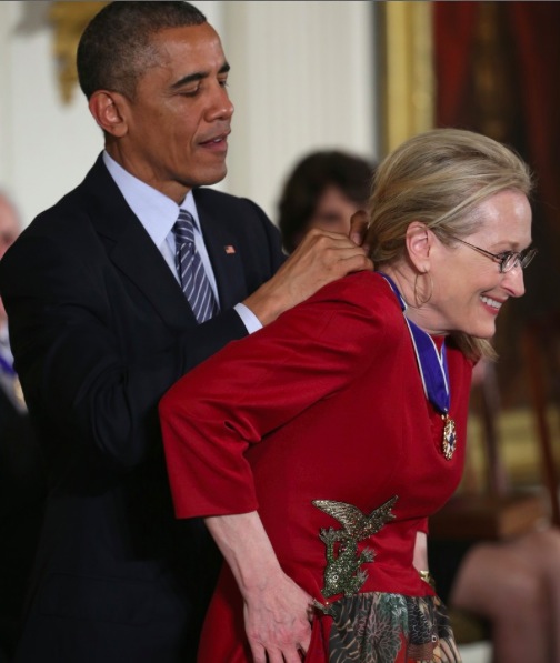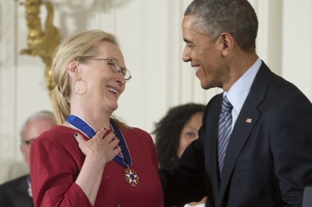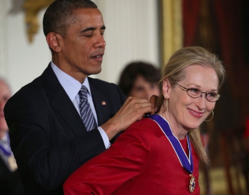 Stórleikkonan Meryl Streep var í þetta sinn meðal þeirra sem fengu Frelsisorðuna í Hvíta Húsinu í gær en hún er þrefaldur Óskarsverðlaunahafi og þykir ein afkastamesta leikkona samtímans. Meðal kvikmynda sem Meryl Streep hefur farið með stórleik í má nefna „The Iron Lady“ sem hún hlaut Óskarsverðlaun fyrir. Þá hefur hún einnig brugðið á leik og tekið þátt í léttum gamanmyndum eins og söngleikjamyndinni Mamma Mia! sem gerð var upp úr ABBA lögum.