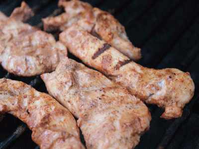 Kjúklingalundirnar eru grillaðar á útigrilli eða steiktar á grillpönnu.